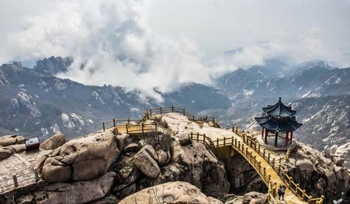 巨峰是嶗山主峰,俗稱“嶗頂”,位于嶗山中部群峰之中,海拔1127.3米。“云海奇觀”、“旭照奇觀”、“彩球奇觀”是巨峰景物中的三大奇觀。特別是“旭照奇觀”,綺麗壯美,被列為嶗山十二景之冠,稱“巨峰旭照”。清代乾隆年間即墨知縣尤淑孝有詩贊曰:“振衣直上最高峰,如發(fā)扶桑一線通。只有仙靈營窟宅,更無人跡惹天風。群山岳岳憑臨外,大海茫茫隱現中。持較岱宗應特絕,碧天咫尺彩云紅。”