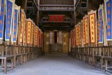 原叫聚義廳。晁蓋在曾頭市中箭身亡后,宋江成了山寨之主,他便把聚義廳改為忠義堂,并在門(mén)前樹(shù)起了“替天行道”的大旗。