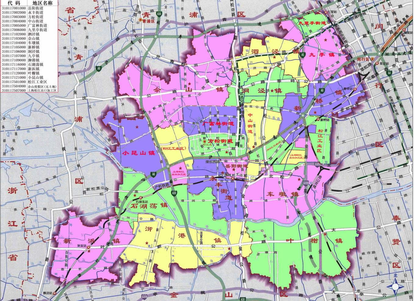 松江區(qū)轄11個鎮(zhèn)、6個街道: