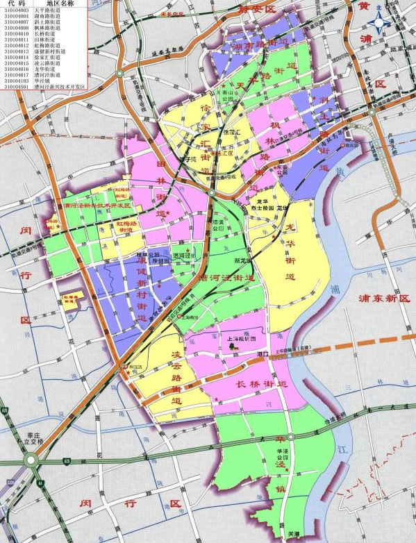 街道:湖南路街道、天平路街道、楓林路街道、徐家匯街道、斜土路街道、長(zhǎng)橋街道、漕河涇街道、康健新村街道、虹梅路街道、田林街道、凌云路街道、龍華街道