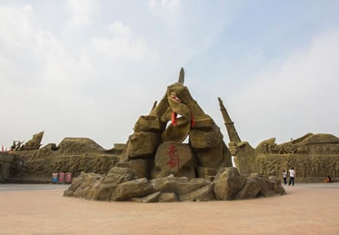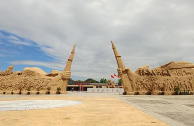 勝利大道全面反映抗戰(zhàn)時期八路軍戰(zhàn)士英勇抗敵,與日軍斗智斗勇,最終取得勝利的畫面。畫面包括:地道戰(zhàn)、地雷戰(zhàn)、小兵張嘎、雞毛信、鐵道游擊隊、雁翎隊、狼牙山五壯士、白求恩、聶耳(義勇軍進行曲)、黨的兒女、歡慶勝利、支援前線、雙槍李向陽、百團大戰(zhàn)、送子參軍、消息樹、紅燈記等21 組雕塑。