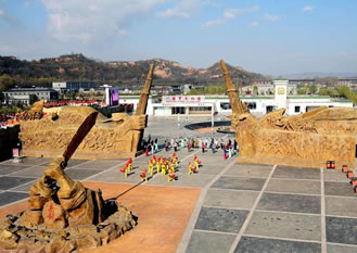 八路軍文化園位于山西省長治市武鄉(xiāng)縣太行西街,背靠的鳳凰山,東臨的馬牧河,整個景區(qū)由前廣場、游客咨詢服務中心、勝利大道、軍藝社、勝利壇、實景劇場、八路村等七部分組成。