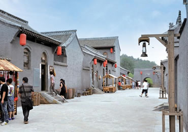 八路村村落建筑總體鳥瞰呈“路”字型,這里高度濃縮八路軍的戰(zhàn)斗精神和光輝業(yè)績,是一個繼承和發(fā)揚八路軍文化,進行愛國主義教育及精神文明教育的生動課堂,突出八路軍的軍旅生活、文化生活,文藝創(chuàng)作、抗戰(zhàn)宣傳、文化教育,軍工生產(chǎn)、政權建設、新聞出版和商貿服務等內容。
