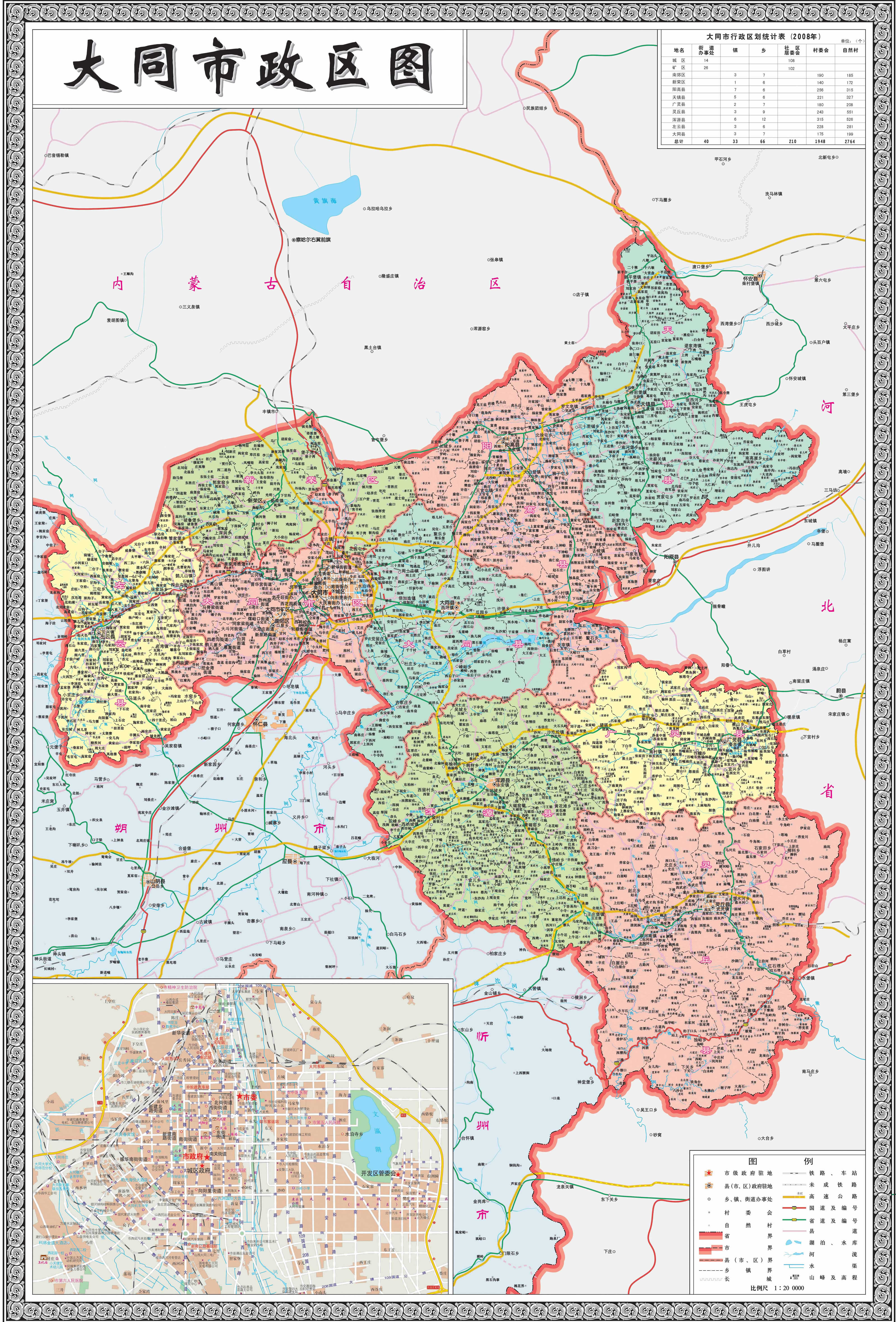 大同市轄4個市轄區(qū)、6個縣: