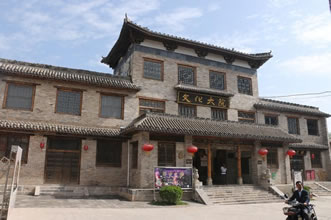 大陽(yáng)古鎮(zhèn)以一條老街作為串聯(lián),將東西大陽(yáng)連接起來(lái)。在這個(gè)有千年輝煌的歷史古鎮(zhèn)中,散落著大量的明清以來(lái)保存下來(lái)的民居。這些民居主要以四合院為主。同時(shí),由于戰(zhàn)爭(zhēng)的影響,大陽(yáng)四合院在防衛(wèi)功能上有比較突出的表現(xiàn)。受到風(fēng)水觀念的影響,還出現(xiàn)了一些三合院和九宮八卦式格局的院落。大陽(yáng)的民居,套園特別多,房連房,樓接樓,空隙非常小。這與北方平原地區(qū)的四合院落迥然不同,屬于典型的北方山區(qū)式庭院。