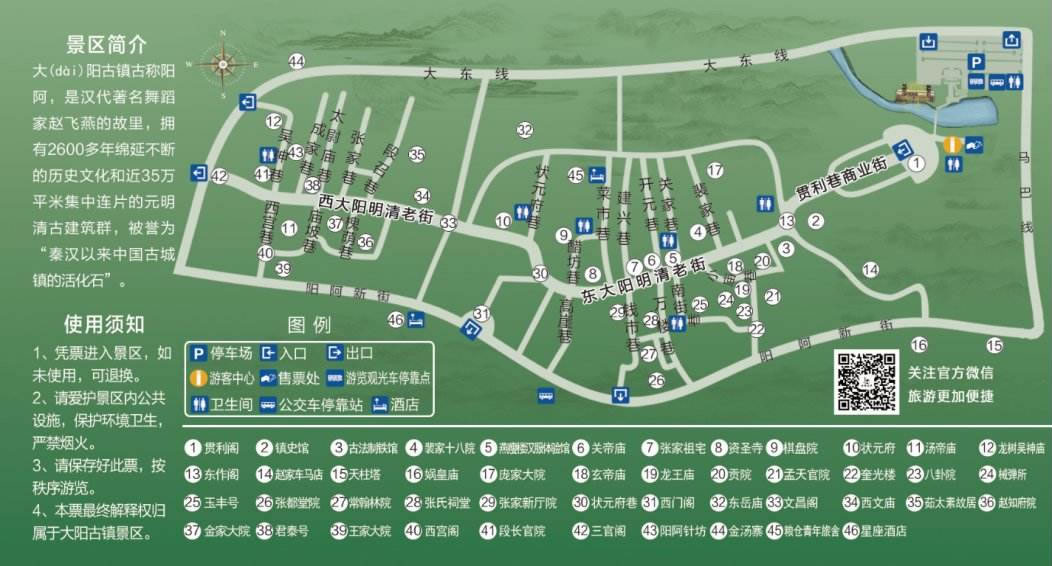 大陽(yáng)古鎮(zhèn)擁有豐富的歷史文化內(nèi)涵,堪稱(chēng)山區(qū)里的“皇宮”,因此顯得彌足珍貴,是一處難得的具有“活化石”背景的古跡游覽勝地。