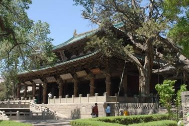 圣母殿前檐廊柱上飾有八條蜿蜒欲動(dòng)的木雕龍,是中國(guó)現(xiàn)存最早的木雕盤龍柱。其中,六條雕龍制于宋元祐二年(1087年),兩條為宋崇寧元年(1102年)増加,八條龍各抱一根大柱,怒目利爪,栩栩如生。圣母殿正面臺(tái)基兩側(cè)還有兩條無角的石雕螭首。
