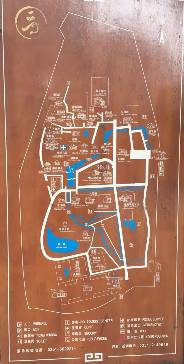 北部從文昌宮起,有東岳祠、關(guān)帝廟、三清祠、唐叔祠、朝陽洞、待風(fēng)軒、三臺(tái)閣、讀書臺(tái)和呂祖閣。這一組建筑物大部隨地勢(shì)自然錯(cuò)綜排列,以崇摟高閣取勝。南部從勝瀛樓起,有白鶴亭、三圣祠、真趣亭、難老泉亭、水母樓和公輸子祠。這一組樓臺(tái)計(jì)峙,泉流潺繞,頗具江南園林風(fēng)韻。