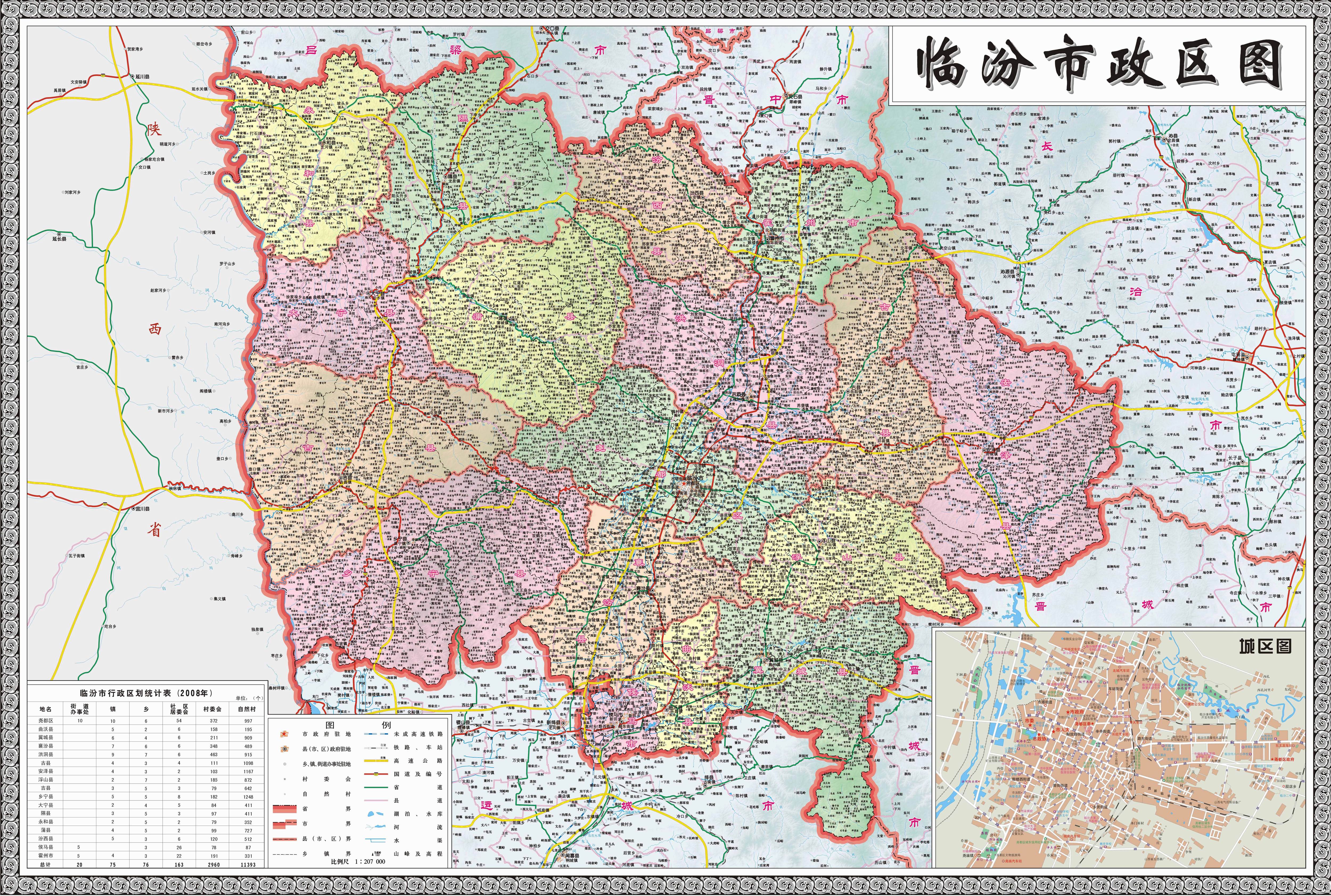 臨汾市轄1個(gè)市轄區(qū)、14個(gè)縣,代管2個(gè)縣級(jí)市:
