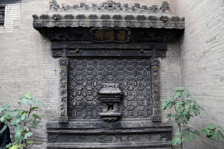 龜背翰錦:喬家大院甬道北三個(gè)府門兩側(cè)有六處龜背紋照壁,壁心以幾十個(gè)六邊形連續(xù)組成幾何圖形的龜背紋樣的磚雕砌飾,以示延年益壽,外觀簡潔大方。東南院和新院里偏院門兩側(cè)也有小型的龜背錦花墻照壁。