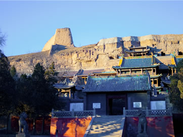 石佛古寺即現(xiàn)存第5、6窟前的云岡寺院,現(xiàn)遺存有山門(mén)、天王殿、廂房、石獅及鐘鼓樓。山門(mén)(清代)位于寺院南北中軸線最南端,建筑形式為磚石混建,硬山頂式,坐落在高臺(tái)基上。山門(mén)上舊題曰:“石佛古寺”,墻壁各嵌二字,左曰“薹頭”,右曰“念佛”。天王殿現(xiàn)左側(cè)門(mén)洞上題“勅建——大佛寺”、右側(cè)門(mén)洞上題“古剎——石佛寺”。這古樸典雅的云岡寺院——石佛古寺,為清順治八年總督佟養(yǎng)量所修石佛寺,后世修葺,現(xiàn)為云岡石窟的一個(gè)清代寺院建筑群標(biāo)志。
