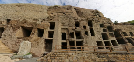 云岡石窟位于中國(guó)山西省大同市城西約16公里的武州(周)山南麓、武州川的北岸。石窟依山開(kāi)鑿,規(guī);趾、氣勢(shì)雄渾,東西綿延約1公里,窟區(qū)自東而西依自然山勢(shì)分為東、中、西三區(qū),F(xiàn)存主要洞窟45個(gè),附屬洞窟209個(gè),雕刻面積達(dá)18000余平方米。造像最高為17米,最小為2厘米,佛龕約計(jì)1100多個(gè),大小造像59000余尊。云岡石窟距今已有1500年的歷史,是佛教藝術(shù)東傳中國(guó)后,第一次由一個(gè)民族用一個(gè)朝代雕作而成皇家風(fēng)范的佛教藝術(shù)寶庫(kù),是公元5世紀(jì)中西文化融合的歷史豐碑。1961年3月被國(guó)務(wù)院公布為首批全國(guó)重點(diǎn)文物保護(hù)單位;2001年12月被聯(lián)合國(guó)教科文組織批準(zhǔn)列入“世界文化遺產(chǎn)”名錄;2007年5月成為國(guó)家首批5A級(jí)旅游景區(qū)。