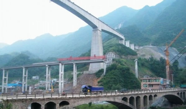 亞洲第一跨 亞洲第一跨位于鎮(zhèn)巴縣巴山鄉(xiāng)兩岔河中游襄渝鐵路Ⅱ線牛角坪雙線特大橋。大橋2006年3月開(kāi)工,至今年8月12日,該橋主體工程按原計(jì)劃順利合龍。主橋墩埋深50米,主墩墩高98米,全長(zhǎng)577.4米,鐵路雙線T型預(yù)應(yīng)力混凝土連續(xù)剛構(gòu)主跨為192米,位居亞洲第一,在世界上僅次于主跨250米的葡萄牙費(fèi)魯瓦利阿大橋。 據(jù)了解,該橋計(jì)劃2009年3月建成交付使用。屆時(shí),高達(dá)111.3米的雄偉大橋,將成為襄渝鐵路線上又一道獨(dú)特的風(fēng)景。