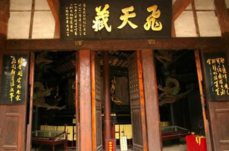 飛天藏又名星辰車,南宋淳熙八年(1180年)建,元代至正時(shí)重修,“明季兵火,惟此獨(dú)存”。是我國唯一現(xiàn)存的宋代道教木制轉(zhuǎn)輪經(jīng)藏。傳說推動(dòng)星辰車,可祛病強(qiáng)身,延年益壽。可惜因?yàn)榈钣钫诜,未見到這件寶貝。