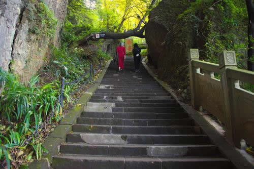 從竇圌山牌坊開始,是一條通往山頂?shù)牟叫惺荨ㄌ斓馈Mㄌ斓篱L513米,806級(jí)石梯,垂直高差63米,俊俏瀟灑,直指云端。