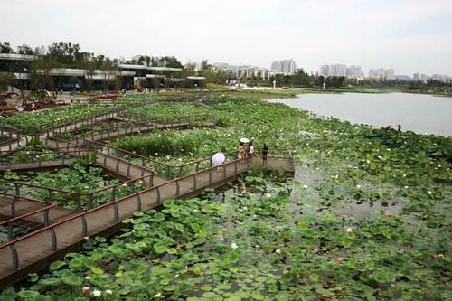 圣蓮島世界荷花博覽園成為遂寧的又一張自然名片,與河?xùn)|的濕地公園、城北濕地公園及席吳二洲濕地公園等景區(qū)一起,打造著這個(gè)城市的文化符號(hào),構(gòu)成遂寧完美的景區(qū)化城市。