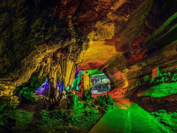 樓房洞全長(zhǎng)約2000余米,可供游覽面積8萬(wàn)平方米以上,洞中三層洞道,六個(gè)獨(dú)成體系的景區(qū),1000余米陰河流水,3000平方米以上的四季不盈不虛的湖水,數(shù)個(gè)神奇的巨型鐘乳石瀑布, 少有的洞內(nèi)溫泉組成立體多層次游覽圖。