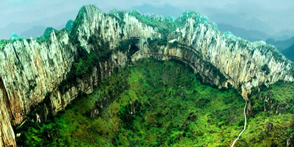 離后洞不遠(yuǎn),有一碗形洼地,為天然大漏斗(一種特定的地理現(xiàn)象),直徑650米,深208米,超過號(hào)稱世界第一的美國(guó)阿里西波大漏斗(直徑330米,深70米),堪稱世界一絕。興文天然大漏斗,被中國(guó)世界紀(jì)錄協(xié)會(huì)收錄為世界最大天然大漏斗候選世界紀(jì)錄。1935年,一名掉隊(duì)的紅軍小戰(zhàn)士,被當(dāng)?shù)胤磩?dòng)武裝俘后拋人洼心,故人們將此地一處石巖取名為紅軍巖。