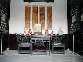 在甬道西側(cè),現(xiàn)辟為"石府復(fù)原陳列"區(qū)。這是當年石家會晤賓客、娛樂消閑、誦經(jīng)禮佛的場所。裝飾陳設(shè)豪華。有四扇木雕花屏,被稱為國寶,當時工價1200兩白銀,一朵花、一片葉就合6兩白銀。室內(nèi)設(shè)備講究。有一間客廳地下有暖風通道,冬天在墻外地爐里每天燒木炭200斤,向室內(nèi)地下供熱。