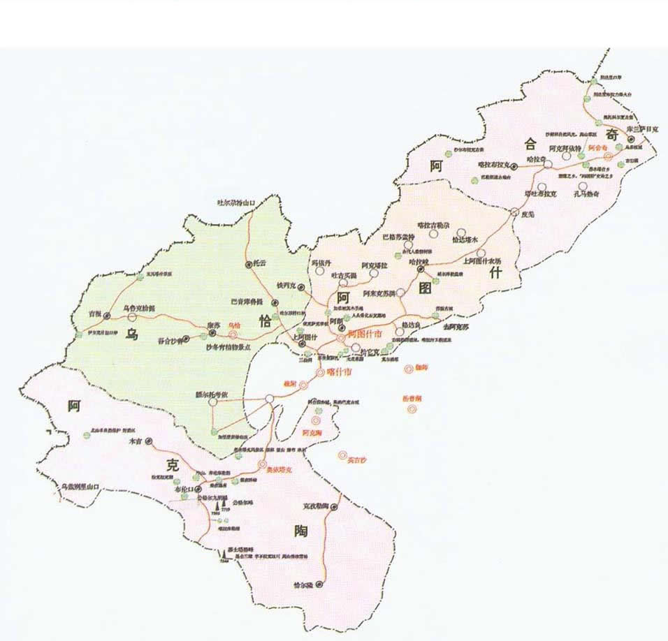 烏恰縣 面積22000平方千米,人口58531,政府駐烏恰鎮(zhèn),下轄2個(gè)鎮(zhèn)、9個(gè)鄉(xiāng)