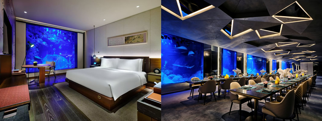 上海佘山世茂洲際酒店,地平線下88米的“建筑奇跡”,由世界知名設(shè)計師Martin Jochman團(tuán)隊打造,將自然巖壁與現(xiàn)代設(shè)計完美融合。酒店330間客房與套房各具特色,包括巖壁景觀房與水下套房,帶來沉浸式住宿體驗。餐飲涵蓋現(xiàn)代感十足的“源咖啡”全日餐廳、綺麗獨特的彩豐樓中餐廳以及四周環(huán)繞水族館的“漁火”特色餐廳;酒吧與大堂吧將深坑景觀與自然美景相映成趣,讓賓客在自然奇境中享受別具一格的入住體驗。