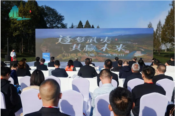 武夷山市政協(xié)黨組書記、主席裴福海先生開場致辭。他指出武夷山作為"三世遺"疊加、"兩公園"輝映的寶地,具有發(fā)展茶文旅產(chǎn)業(yè)的獨特優(yōu)勢。武夷山市將全力支持茶足徑、世界紅茶小鎮(zhèn)及萬里茶道起點小鎮(zhèn)項目建設(shè),持續(xù)優(yōu)化營商環(huán)境,為來武投資企業(yè)提供全方位服務(wù)保障。