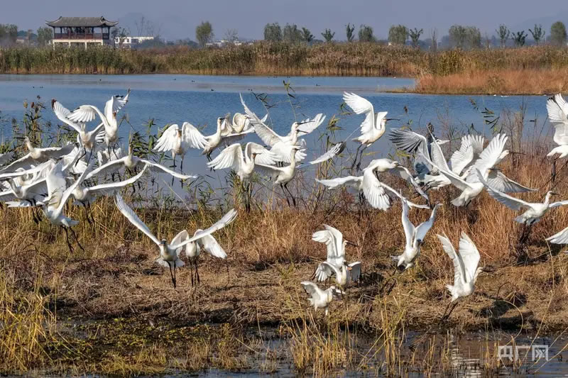 近年來(lái),廬江縣通過(guò)實(shí)施退漁還湖等一系列生態(tài)修復(fù)工程,顯著提升了黃陂湖濕地的水質(zhì)和生態(tài)功能,為候鳥(niǎo)提供了豐富的食物來(lái)源和安全的棲息環(huán)境。盡量減少人為干擾,確保這群遠(yuǎn)道而來(lái)的‘貴客’能夠安然過(guò)冬。除了白琵鷺,前來(lái)越冬的還有灰雁、鴛鴦等大量候鳥(niǎo),黃陂湖濕地正日益成為候鳥(niǎo)遷徙路線(xiàn)上一個(gè)重要的“中轉(zhuǎn)站”和“加油站”。
