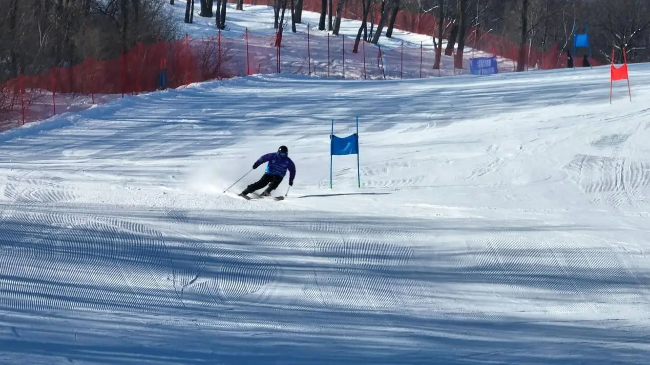 全國(guó)滑雪場(chǎng)聯(lián)盟“冰雪絲路杯”粉雪聯(lián)賽松花湖站比賽現(xiàn)場(chǎng)(央廣網(wǎng)記者 舒震 攝)