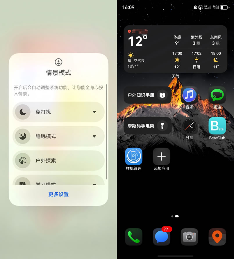 現(xiàn)在好了,我的Mate 80上有戶外探索模式,下拉控制中心,選擇情景模式中的“戶外探索”,即可開(kāi)啟戶外場(chǎng)景定制功能。不僅能優(yōu)化續(xù)航,天氣信息也實(shí)時(shí)“在線”,多日預(yù)報(bào)、實(shí)況天氣、預(yù)警、天氣指數(shù)這些關(guān)鍵數(shù)據(jù)都能看。