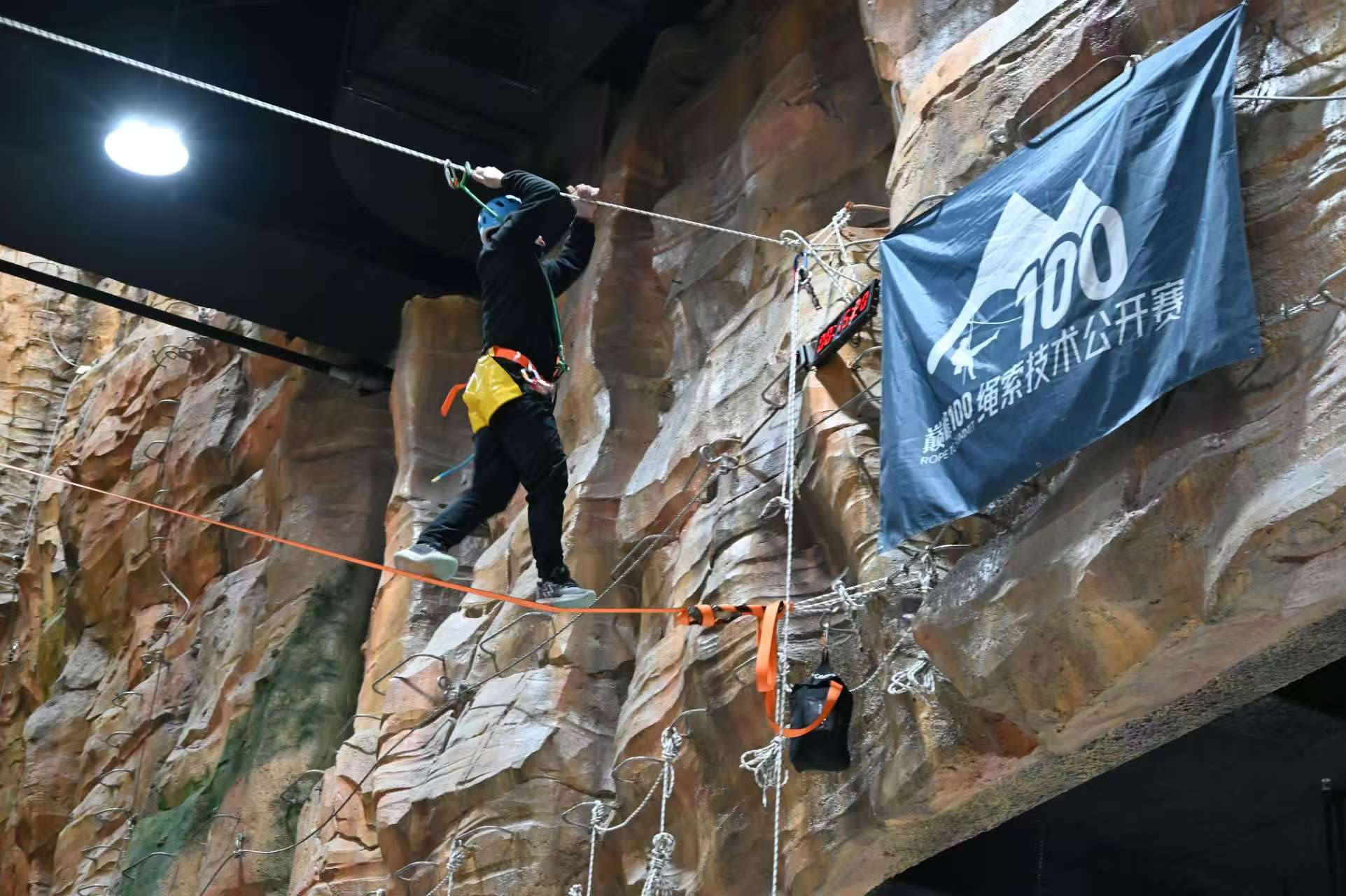 首屆“天恒文旅·恒探界室內(nèi)探險旅游節(jié)”內(nèi)容設(shè)計兼顧專業(yè)性與大眾性,強調(diào)參與感與體驗性。其中,“大眾繩索探險趣味賽”作為貫穿活動始終的核心板塊,將面向14至60周歲的廣泛人群開放。賽事設(shè)置高空走扁帶、通天戰(zhàn)繩、橫渡繩橋、扁帶躺繩四項趣味項目,參賽者可在專業(yè)教練指導(dǎo)與完善安全防護下體驗繩索運動的樂趣。活動采用預(yù)選賽與總決賽機制,參與者可重復(fù)挑戰(zhàn)刷新成績,優(yōu)勝者將獲得獎勵。這一低門檻、高趣味的賽事設(shè)計,有效降低了專業(yè)戶外運動的參與壁壘,是推動全民健身向生活化、趣味化延伸的有益探索。
