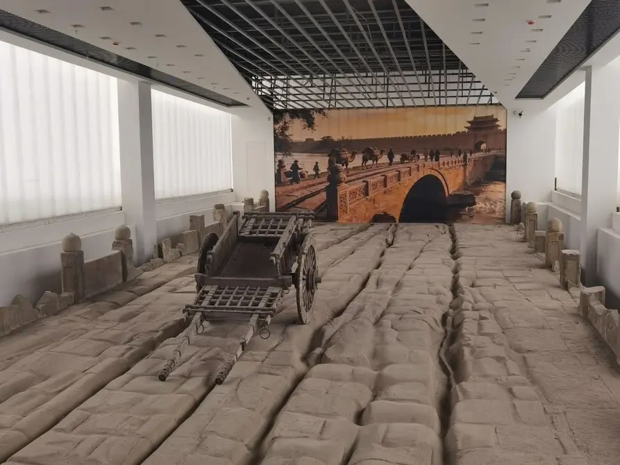 呈現(xiàn)在人們眼前的鎮(zhèn)遠橋為黃砂巖條石砌筑的單孔拱橋,造型古樸,結構穩(wěn)固。橋體殘長22米,寬17米,拱高3.5米,保存有橋拱、橋身、雁翅駁岸等部分。尤為珍貴的是,橋面清晰保留有4道深淺不一的車轍痕跡,其中最深處達10厘米,生動見證了明清時期太原城商旅絡繹、車馬穿行的繁盛景象,是晉商活動與北方商貿(mào)往來的一份無聲檔案。