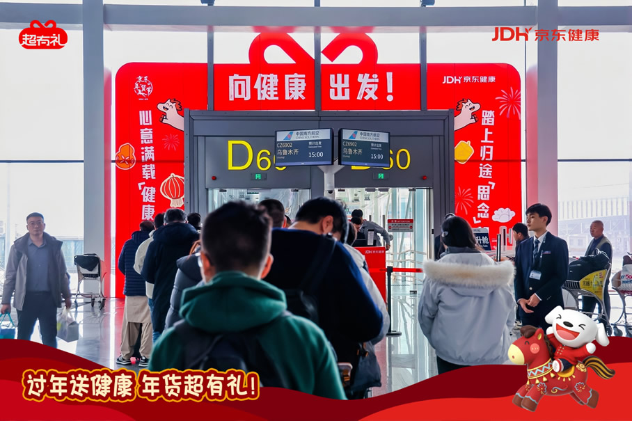 京東旅行攜手京東健康“超有禮”IP在此次年貨節(jié)中,通過全鏈路航空?qǐng)鼍盃I銷實(shí)現(xiàn)了品牌與用戶的深度互動(dòng),圍繞“機(jī)場(chǎng)快閃—主題登機(jī)口—主題航班—行李傳送帶驚喜事件”構(gòu)建貫穿出行始終的品牌體驗(yàn)閉環(huán),以創(chuàng)新的事件組合與場(chǎng)景融入,將健康關(guān)懷自然嵌入用戶春運(yùn)旅程。這一策略高度適配春節(jié)出行場(chǎng)景,不僅精準(zhǔn)觸達(dá)返鄉(xiāng)、探親、商旅等多類用戶群體,更通過具象化的健康禮品派發(fā)、溫情驚喜體驗(yàn)等,持續(xù)強(qiáng)化“春節(jié)送健康禮”的消費(fèi)心智,成功將健康禮贈(zèng)塑造為新年問候的情感載體與品質(zhì)之選。
