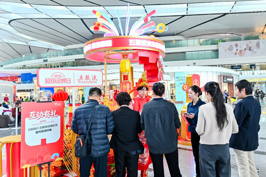 京東旅行攜手五糧液在此次年貨節(jié)中圍繞“機(jī)場(chǎng)快閃—主題航班—行李傳送帶驚喜事件”構(gòu)建全鏈路航空?qǐng)鼍盃I銷體系,通過場(chǎng)景沉浸與體驗(yàn)互動(dòng)相結(jié)合的方式,創(chuàng)新打造“空中禮遇”高端消費(fèi)場(chǎng)景。這一營銷策略精準(zhǔn)契合春節(jié)出行期間高品質(zhì)用戶的禮贈(zèng)需求,在航空?qǐng)鼍斑@類高凈值人群聚集場(chǎng)景中實(shí)現(xiàn)精準(zhǔn)觸達(dá)。通過文化展示、互動(dòng)與禮贈(zèng)驚喜的多維滲透,五糧液X京東超級(jí)品牌日不僅強(qiáng)化了其作為春節(jié)高端禮贈(zèng)首選品牌的認(rèn)知,更成功將“飛行途中·禮載心意”提升為春節(jié)消費(fèi)的新風(fēng)尚,進(jìn)一步鞏固了在高端年貨市場(chǎng)中的心智占位與品牌勢(shì)能。
