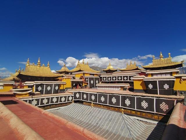 大昭寺,又名“祖拉康”、“覺康”(藏語意為佛殿),位于拉薩老城區(qū)中心,是一座藏傳佛教寺院,是藏王松贊干布建造,拉薩之所以有“圣地”之譽,與這座佛像有關(guān)。寺廟最初稱“惹薩”,后來惹薩又成為這座城市的名稱,并演化成當(dāng)下的“拉薩”。大昭寺建成后,經(jīng)過元、明、清歷朝屢加修改擴建,才形成了現(xiàn)今的規(guī)模。