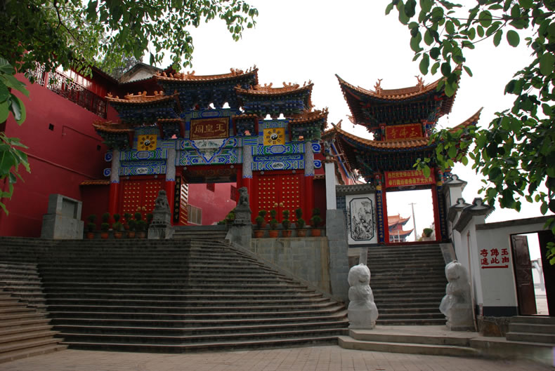 保山玉皇閣,位于保山市城西太保山上,是保山境內(nèi)規(guī)模最大,保存最好的道教建筑群之一。始于嘉靖二十八年(1549年),三十八年(1559年)落成開(kāi)放。占地面積3399.2平方米,依地形而建,坐西向東,橫向布局為三個(gè)院落,分別為山門(mén)、三官殿、灶君樓。主體建筑玉皇閣居于整個(gè)建筑群的中央,由大殿及鐘、鼓二亭組成一個(gè)“品”字形院落。整個(gè)建筑氣勢(shì)雄偉,結(jié)構(gòu)精湛,裝飾華美,充分體現(xiàn)了封建社會(huì)帝王為尊、皇權(quán)至上的構(gòu)思主題,具有極高的史學(xué)研究和藝術(shù)鑒賞價(jià)值。