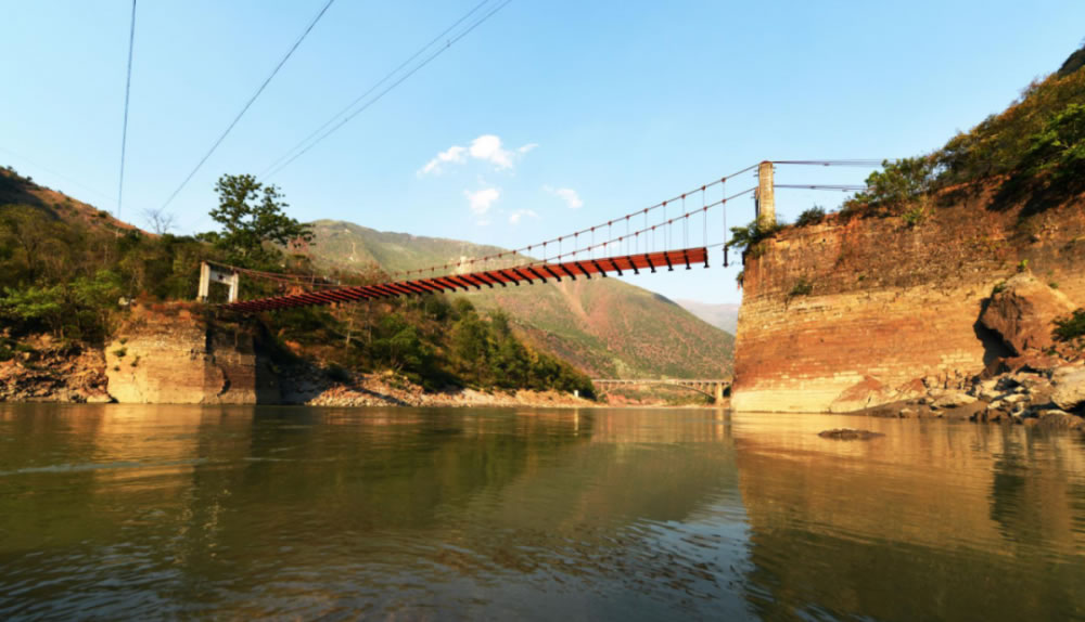 惠通橋位于施甸縣與龍陵縣分界的怒江上,位于云南省保山市龍陵縣臘勐鎮(zhèn)臘勐社區(qū),吊橋全長(zhǎng)205米,跨徑190米,由17根巨型德國(guó)鋼纜飛架而成,最大負(fù)重7噸。 惠通橋,始建于明朝末年,初為鐵鏈索橋,位于滇緬公路(中國(guó)段)六百公里處,滇緬公路的咽喉。民國(guó)二十五年,新加坡華僑梁金山捐資,將舊橋改建為新式柔型鋼索大吊橋。吊橋全長(zhǎng)205米,跨徑190米,由17根巨型德國(guó)鋼纜飛架而成,最大負(fù)重7噸。至1977年新建鋼骨水泥大橋落成通車,吊橋開始廢棄不用。