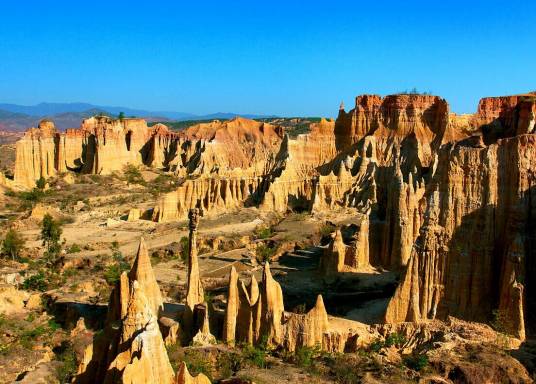 元謀土林是中國(guó)乃至世界上一大奇妙的自然奇觀,在經(jīng)歷了幾百萬年的地殼運(yùn)動(dòng)后,風(fēng)雨之神把元謀的土地雕琢成了千奇百怪的形狀。