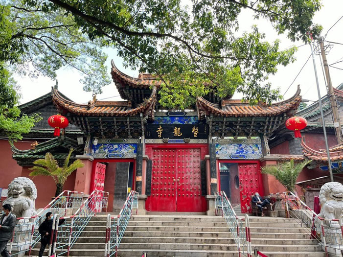 盤龍寺,位于滇池東岸盤龍山,距晉城鎮(zhèn)東南3千米,距昆明市區(qū)約40千米,是云南著名的佛教圣地之一。盤龍山方圓數(shù)十里,群山環(huán)抱、松濤萬頃,主峰巍峨聳立、中峰突起,史稱盤龍,盤龍寺由此得名。盤龍寺建于元朝至正七年(1347年),明初又繼續(xù)擴(kuò)建寺院,初具規(guī)模。歷代文人在盤龍寺留下了許多詩詞書畫、楹聯(lián)、橫匾和碑銘等,其中以元梁王、明朝永歷帝和徐霞客等名人的手跡較為珍貴。1983年,盤龍寺被列為昆明市重點(diǎn)文物保護(hù)單位。