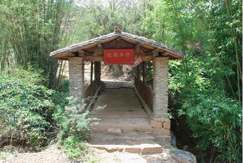 杜郎木橋,又名“紅軍橋”。位于富民縣散旦鎮(zhèn),建于1935年,橋長(zhǎng)12米,寬3米,橋面建有瓦屋頂。該橋建成后,紅軍第二、六軍團(tuán)長(zhǎng)征從這里進(jìn)入富民,具有建筑獨(dú)特和革命歷史背景雙重性,2001年公布為縣級(jí)文物保護(hù)單位。