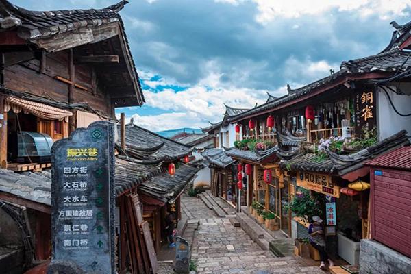 具有800多年歷史的麗江古城,坐落在麗江壩子中部,面積約3.8平方千米,始建于南宋末年,是中國(guó)歷史文化名城中唯一沒(méi)有城墻的古城。發(fā)源于城北象山腳下的玉泉水分三股入城后,又分成無(wú)數(shù)支流,穿街繞巷,流布全城。古城心臟四方街明清時(shí)已是滇西北商貿(mào)樞紐,是茶馬古道上的集散中心。其四周6條五彩花石街道依山隨勢(shì),輻射開(kāi)去,街巷相連。1986年被國(guó)務(wù)院確定為中國(guó)歷史文化名城;1997年12月4日,被聯(lián)合國(guó)教科文組織正式批準(zhǔn)列入《世界遺產(chǎn)名錄》清單,成為全國(guó)首批受人類共同承擔(dān)保護(hù)責(zé)任的世界文化遺產(chǎn)城市。