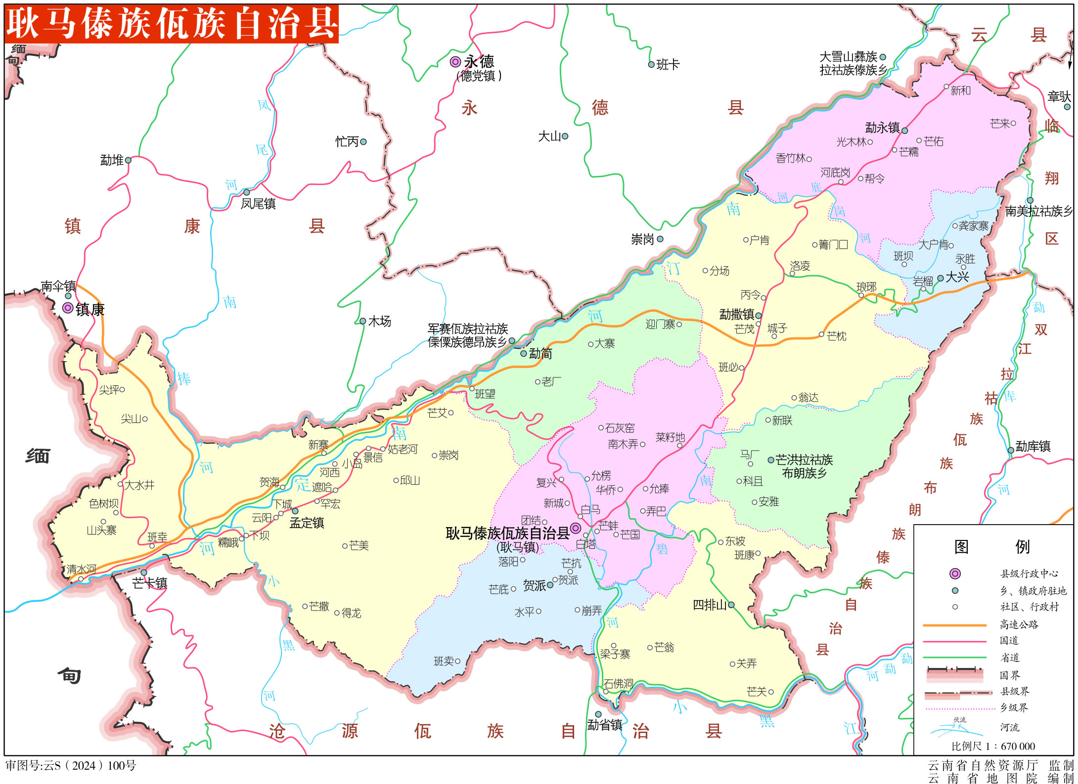 鎮(zhèn):耿馬鎮(zhèn)、勐永鎮(zhèn)、勐撒鎮(zhèn)、孟定鎮(zhèn)