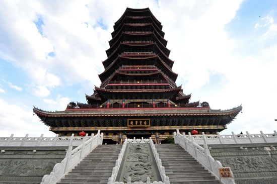 靖寧寶塔位于寥廓山頂,屬曲靖城市最高點的地標(biāo)性建筑。靖寧寶塔占地9997平方米(13畝)、總投資7000萬元,分為主塔建設(shè)和室外環(huán)境配套建設(shè)兩部分。主題建筑面積7427平方米,建筑立面為明清仿古式樓閣造型,主塔為9層,底層為四邊形,二層以上呈八邊形布置,每層收分60厘米,塔總高81.6米,塔主題由塔基、塔身、塔剎三部分組成。