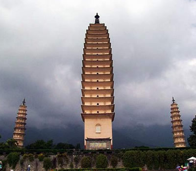 三塔相傳建于南詔保和時(shí)期,三塔之旁原有規(guī)模宏大的崇圣寺。據(jù)《南詔野史》、《自古通記》等史籍記載,寺基方7里,建于南詔第十主豐佑,保和十年至天啟元年(公元834至840年)。經(jīng)歷了千年滄桑和風(fēng)雨剝蝕,崇圣寺終毀于清咸豐年間,如今惟留三塔。近年來曾在塔頂發(fā)現(xiàn)南詔、大理中時(shí)期的重要文物600余件。