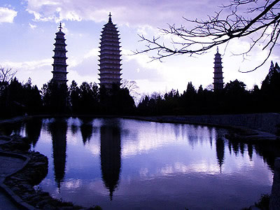 大理崇圣寺三塔,距離下關(guān)14公里,位于大理以北1.5公里蒼山應(yīng)樂峰下,背靠蒼山,面臨洱海,三塔由一大二小三座佛塔組成,呈鼎立之態(tài),遠(yuǎn)遠(yuǎn)望去,雄渾壯麗,是蒼洱勝景之一。