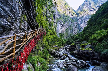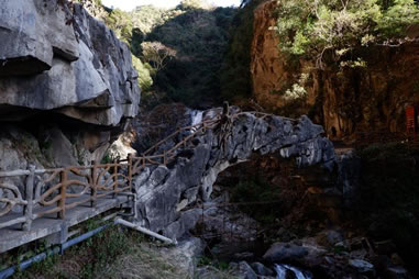 古代的文人墨客雖然游了石門關(guān),但卻不能進(jìn)入石門關(guān)縱深之處游覽,李元陽驚呼石門內(nèi)“忽驚飆從空中飛墜,聲如訇雷,凜乎不可留,從者扶挽而出!毙煜伎涂疾斓绞T關(guān)口嘆道:“但門以內(nèi)則石崩水涌,路絕不通,乃復(fù)上就北岐躡磴”。二位先賢不能進(jìn)入石門縱深游覽,不能說不是一種遺憾。隨著歲月的流逝,歷史的滄桑巨變,現(xiàn)代人能隨心所欲進(jìn)入石門縱深探幽走險(xiǎn),實(shí)在是一種福份。