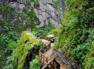 ①步行游路:福緣橋——龍王廟——天開石門——鶴峰亭——五道水服務(wù)區(qū)——枯木要塞——萬獸谷——百步天梯——野生芭蕉林——七道水彩虹橋,全長(zhǎng)2500米;