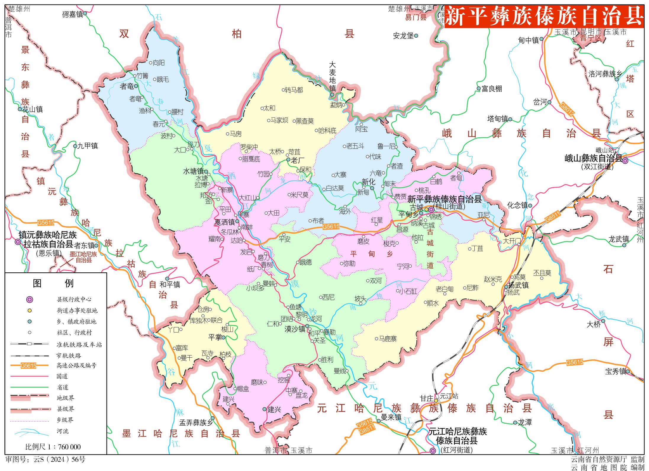 鎮(zhèn):揚(yáng)武鎮(zhèn)、漠沙鎮(zhèn)、戛灑鎮(zhèn)、水塘鎮(zhèn)