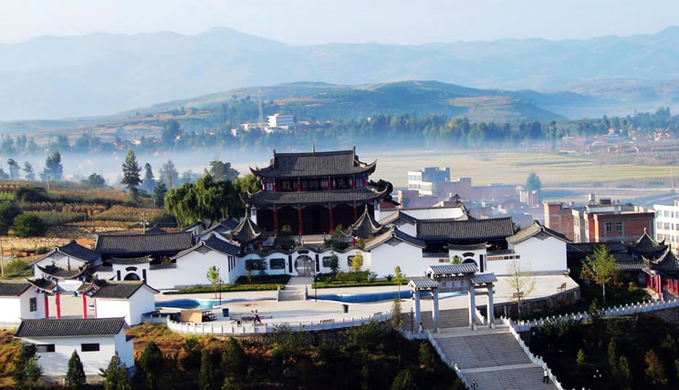 崇文閣位于縣城南郊,建于2005年6月,占地面積35畝,主要建筑由崇文石階、崇文牌坊、泮池、狀元橋、儒園、先師殿、中和堂、學(xué)問(wèn)堂、明倫堂、邑文堂、硯池齋、墨客軒、尊師坊、觀景臺(tái)組成。這里地勢(shì)高昂,平壩中突起一巒,蜿如臥龍,得名“臥龍山”,崇文閣正居龍頭。