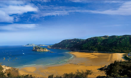 大沙岙景區(qū)是南麂列島的中心區(qū),位于主島西南部,屬旅游開發(fā)的核心地帶,各賓館、文化設施等均設在該景區(qū)。大沙岙景區(qū)風光秀麗,特點是:碧海、金沙、險礁。由千萬年來貝殼碎屑堆積而成的大沙岙沙灘可能是浙滬沿海一帶最理想的海濱浴場。大沙岙在南麂本島的西南部,面對東海,三面環(huán)山,長達800余米,縱深達600余米,呈新月形。海沙又細又干凈,湛藍色的海水常年潔凈透明。起風時,海浪有節(jié)奏地拍擊沙灘,發(fā)出巨響,卷起千堆雪。但此時不能游泳,也不宜在臨近海水處步行。浴場兩旁的岬角深入海中,自然環(huán)境幽雅秀麗,浴場淡水充足,灘地寬廣,可同時容納千人游泳。