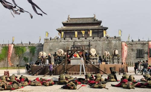 襄陽(yáng)城位于影視城的北大門(mén),長(zhǎng)400米、高10米、寬6米的城墻有造型各異的兩座城門(mén)。襄陽(yáng)城,最初是拍攝《神雕俠侶》襄陽(yáng)大戰(zhàn)的取景地,也是《瑯琊榜》中的金陵城。